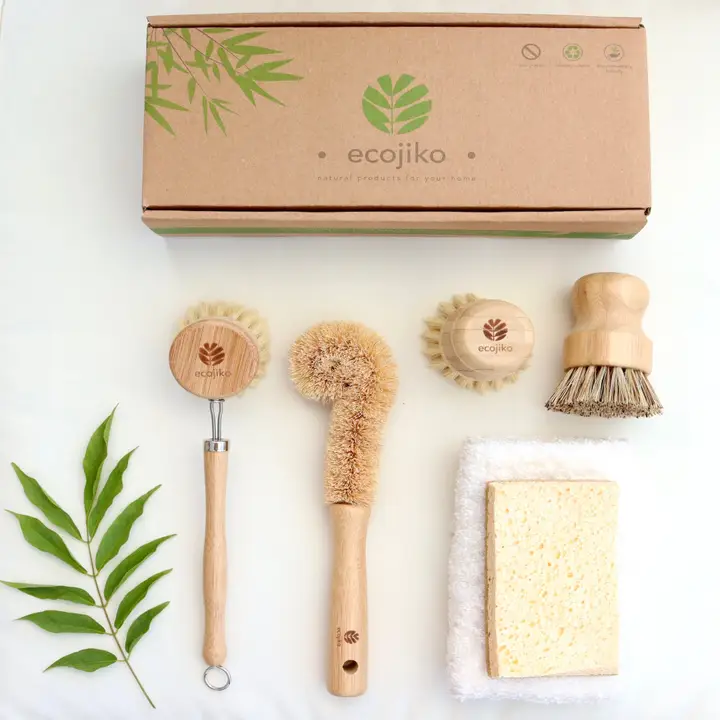 The ecojiko dish brush set makes washing up more enjoyable! The set is lovingly designed so that you can enjoy the retro style, together with the knowledge that your cleaning set is biodegradable and environmentally friendly. ECO-FRIENDLY: All of the items in the dish brush and cleaning set are made from natural, non-plastic materials, which will biodegrade rather than lasting years in landfill.